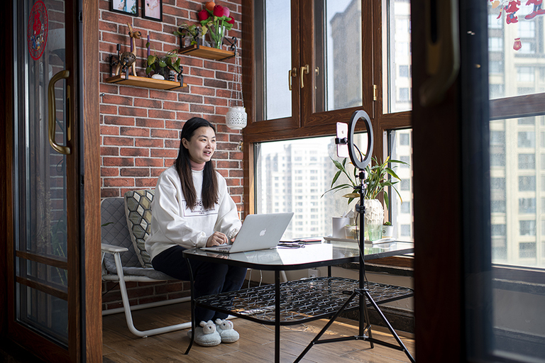 2月22日,王怿在家中进行公益直播,对观众进行心理疏导。
