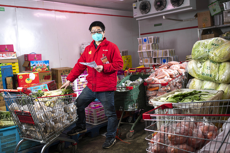 胡博是武汉一家超市的生鲜配送员。1月23日,离汉通道关闭前一个小时,家人还在给胡博打电话,劝他回家,“看能不能请假,不行就离职?!彼囱≡窳粝?。此后的一个多月的时间里,他几乎没有休息,每天工作十几个小时,只为把生鲜产品送到更多的市民家中。