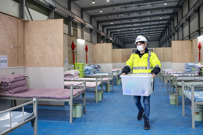 蔡彬是武汉航空港发展集团有限公司的一名“90后”施工员。从1月25日至今,他一直奋战在紧急医疗项目的建设现场。刚参加完火神山医院的抢建任务,他还没来得及休息,就接到号召,马上又转战方舱医院改建现场。他说“我不是医生,但我也在战斗,希望武汉早点恢复正常,美好温暖的春天早点到来!”