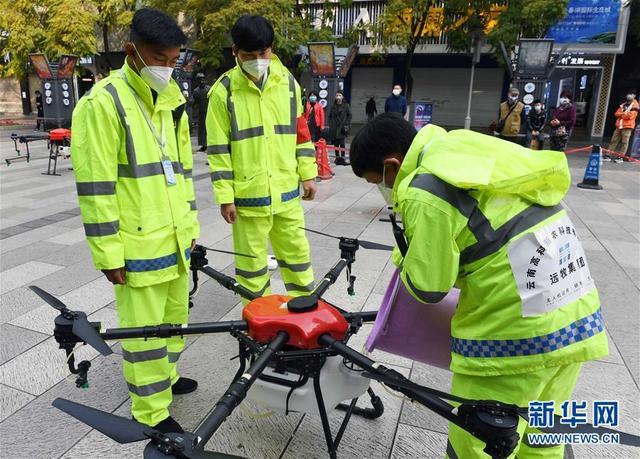 2月27日,远牧集团无人机志愿防疫队队员在给无人机添加消毒液。经主管部门批准,自2月10日以来,远牧集团无人机志愿防疫队与当地政府合作,每天出动8架无人机飞行在昆明市的公共活动区域,进行喷洒消杀。新华社记者 杨宗友 摄