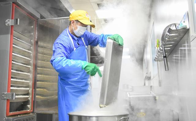 3月6日,记者来到武汉一家为方舱医院提供餐食的供餐公司,用镜头记录下方舱医院“后厨房”的工作景象。