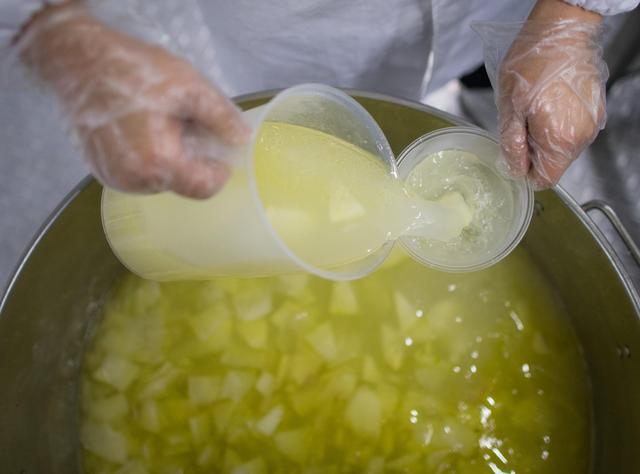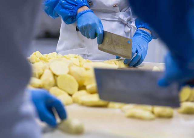 ↑3月6日,工作人员在切土豆。新华社记者 肖艺九 摄