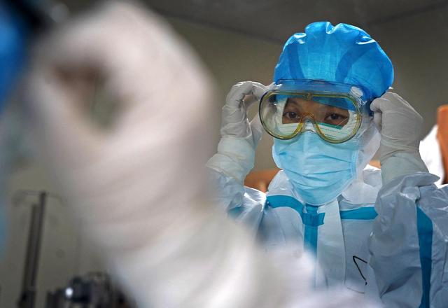 ↑南昌大学第一附属医院象湖院区重症监护室护士长江榕在调整护目镜(2月5日摄)。新华社记者 万象 摄