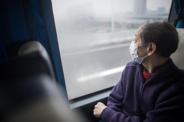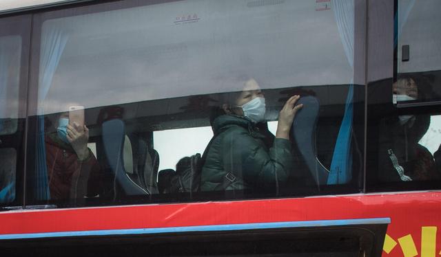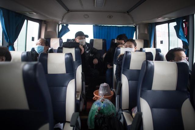3月12日,解除隔离的治愈患者在回家的车上。