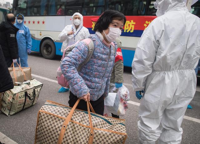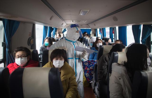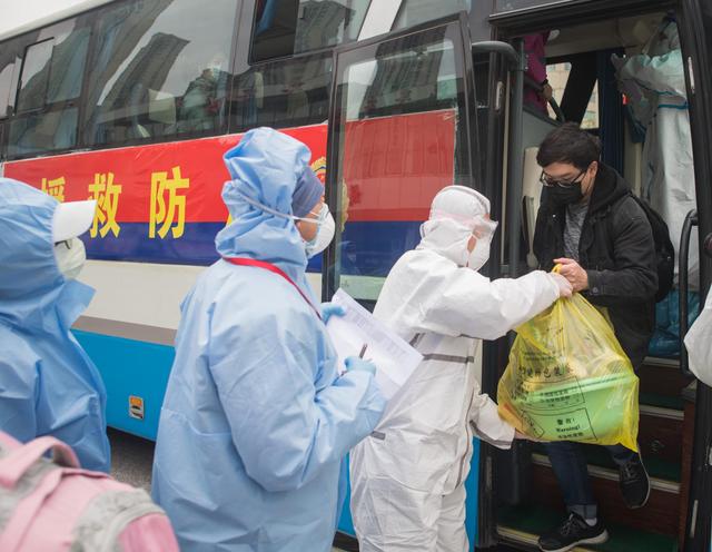 3月12日,解除隔离的治愈患者到达集散点,准备由社区工作人员接回家。