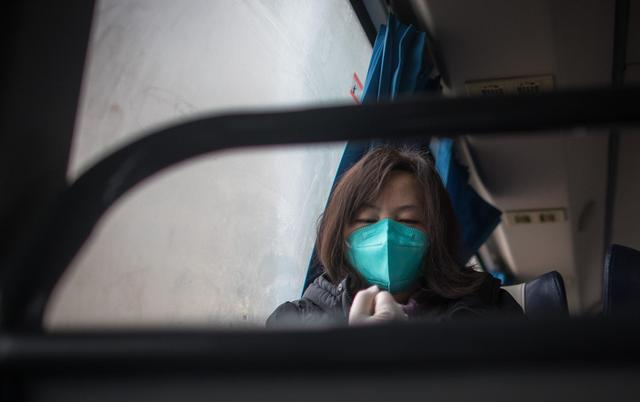 3月12日,一名解除隔离的治愈患者在回家的车上。
