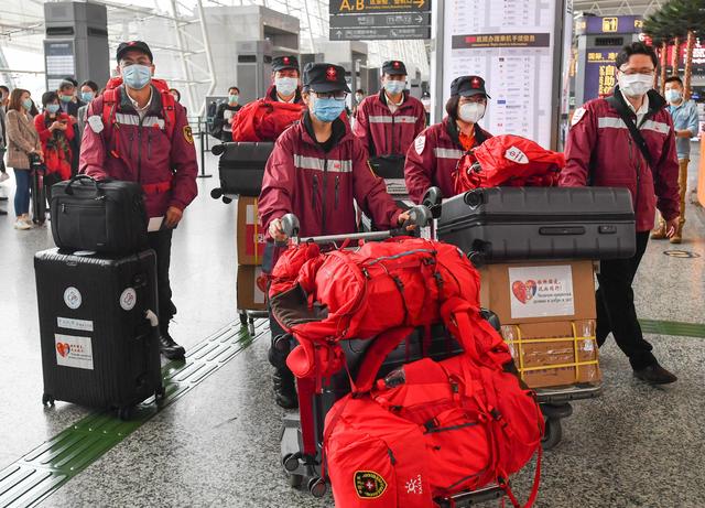 3月21日,中国赴塞尔维亚抗疫医疗专家组从广州白云国际机场出发。