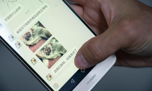 高进东展示他与动物主人的微信在线问诊。