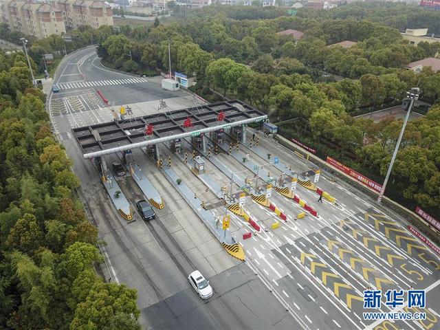 3月25日,车辆有序进出京港澳高速孝感东出入口(无人机照片)。从3月25日零时起,湖北省除武汉市以外地区解除离鄂通道管控,有序恢复对外交通,离鄂人员凭湖北健康码“绿码”安全有序流动。 新华社记者胡虎虎 摄