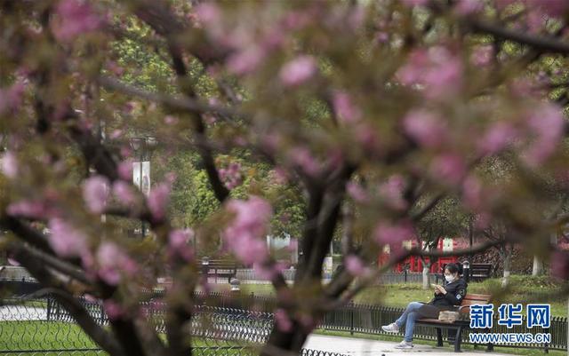 3月25日,在武汉的一个街心花园,市民在长椅上休息。新华社记者费茂华 摄