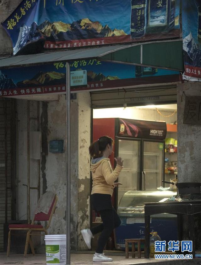 3月25日晚,武汉市民在街边的便利店前跳健身操。新华社记者费茂华 摄