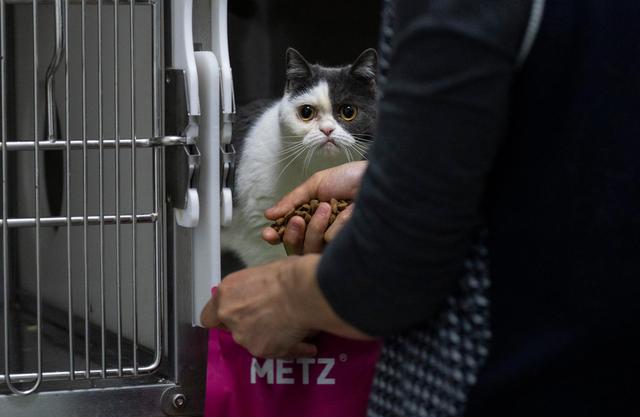 对比较“粘人”的猫咪,高进东有时会把它们抱在怀里安抚(3月24日摄)。