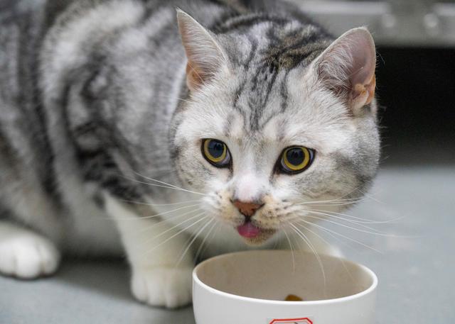 在武汉默东动物医院(光谷分院),一只小猫在进食。