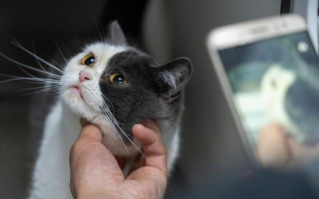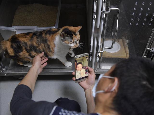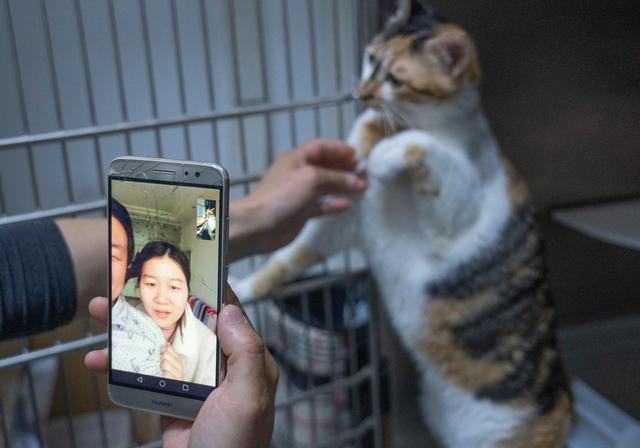 高进东通过视频连线让宠物主人实时了解寄养猫咪的情况。
