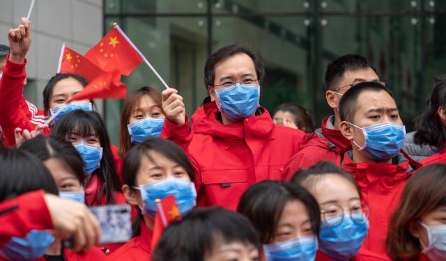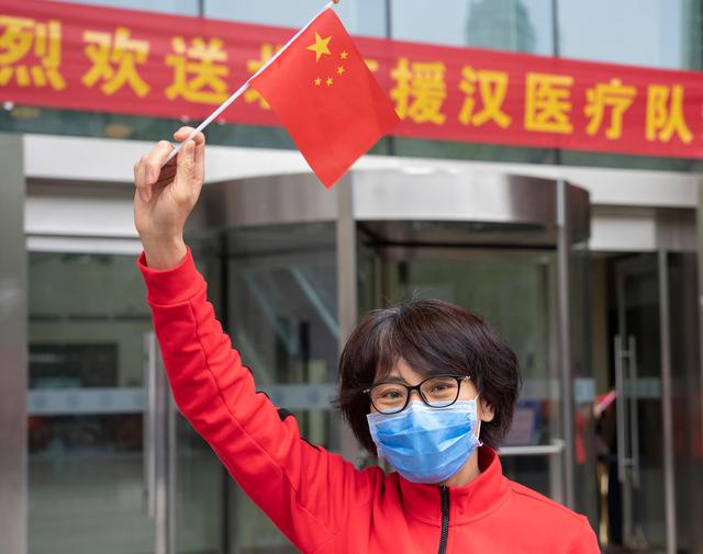 ↑3月31日,人们送别北京市属医院医疗队队员。