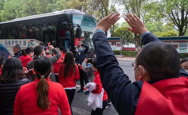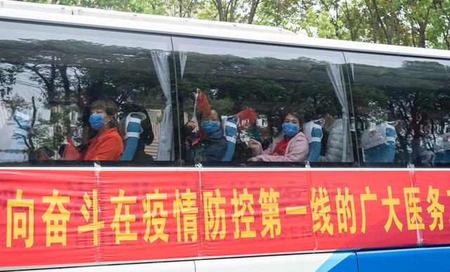 3月31日,在武汉协和医院西院区奋战两个多月后,共有136名医护人员的北京市属医院医疗队离开武汉返程。这支医疗队队员来自北京朝阳医院、北京安贞医院、宣武医院、北京中医医院等12家北京市属医疗机构。新华社记者才扬 摄