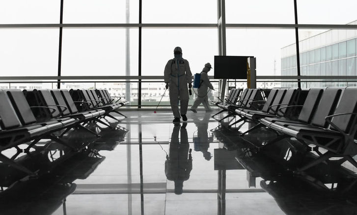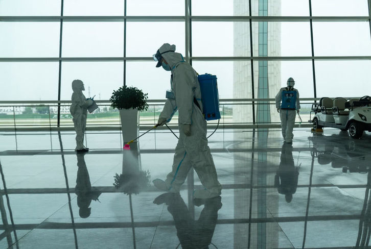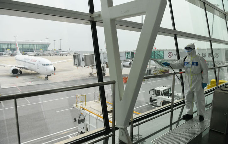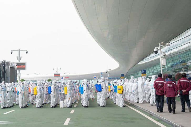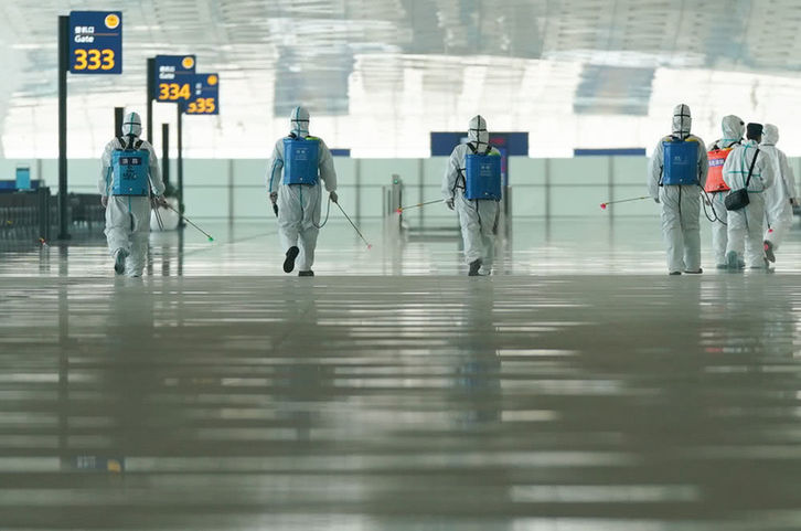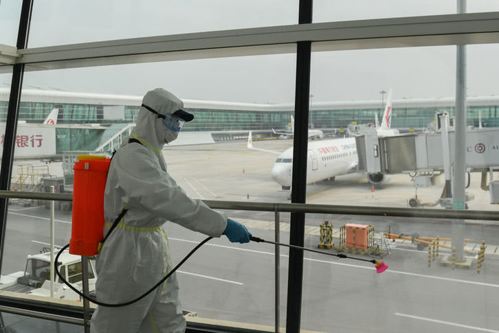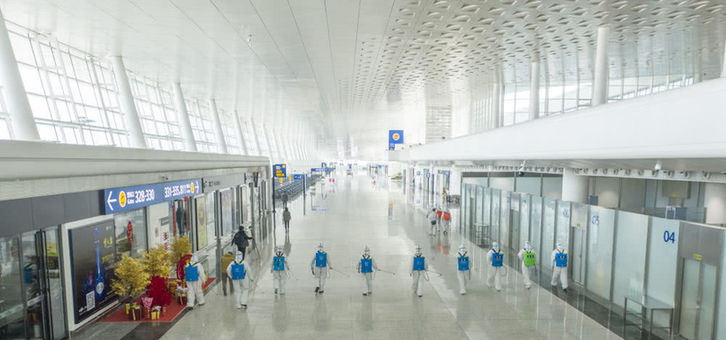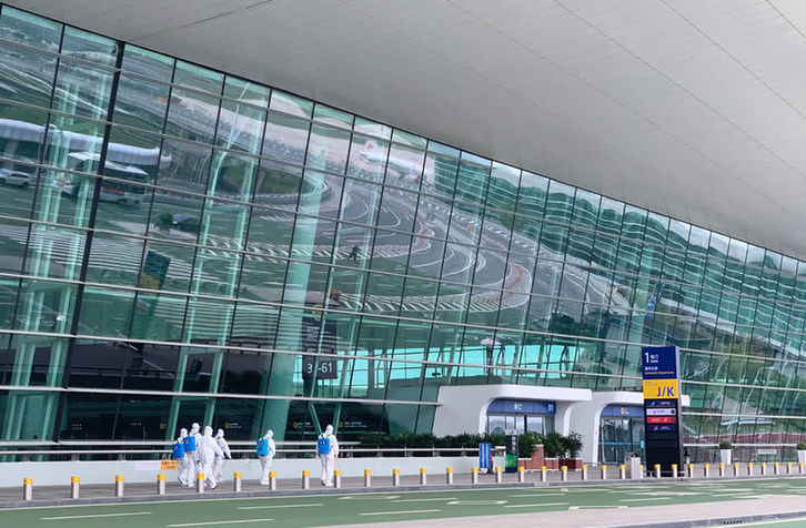 武汉天河机场为复航开展消杀作业