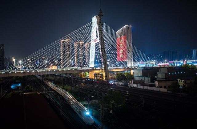↑这是4月7日晚在武汉江岸区拍摄的夜景。4月8日零时起,武汉市正式解除离汉离鄂通道管控措施。新华社记者 肖艺九 摄