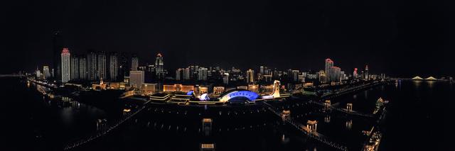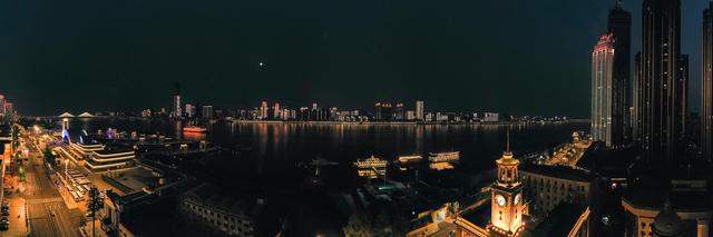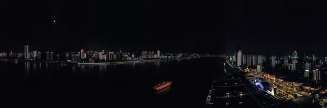 ↑这是4月7日晚拍摄的武汉市江汉关博物馆附近的长江沿岸建筑灯光夜景(无人机全景照片)。