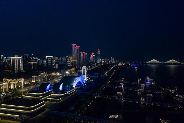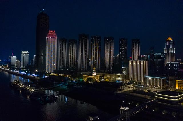 ↑这是4月7日晚拍摄的武汉市江汉关博物馆附近的长江两岸建筑灯光夜景(无人机拍摄)。