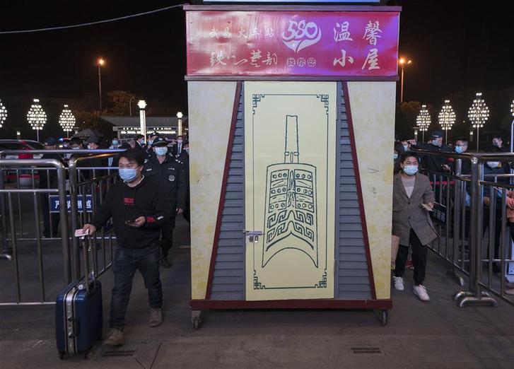 4月7日晚,旅客走进武昌火车站。 4月8日零时起,武汉市正式解除离汉离鄂通道管控措施,有序恢复对外交通。 新华社记者 费茂华摄