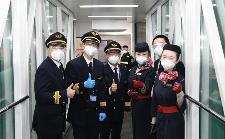 4月8日,东方航空MU2527航班从武汉天河国际机场起飞,目的地为三亚。这标志着武汉机场暂停商业客运航班76天后正式复航,这是机组成员在起飞前合影。 4月8日零时起,武汉市正式解除离汉离鄂通道管控措施,有序恢复对外交通。 新华社记者 程敏 摄