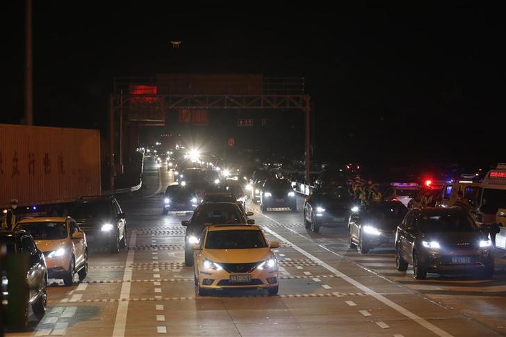 4月8日凌晨,车辆准备通过武汉西高速收费站。 4月8日零时起,武汉市正式解除离汉离鄂通道管控措施,有序恢复对外交通。新华社记者 沈伯韩 摄