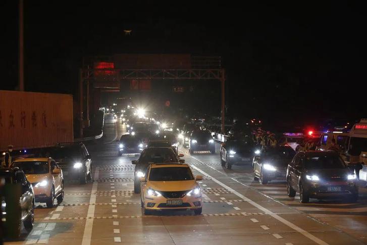 ▲ 4 月 8 日凌晨,车辆准备通过武汉西高速收费站。