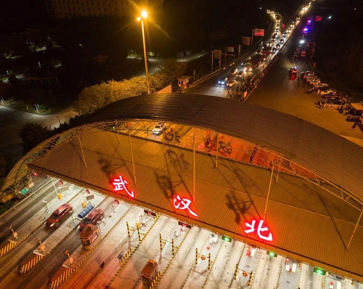 ▲ 4 月 8 日凌晨,车辆通过武汉北高速收费站。