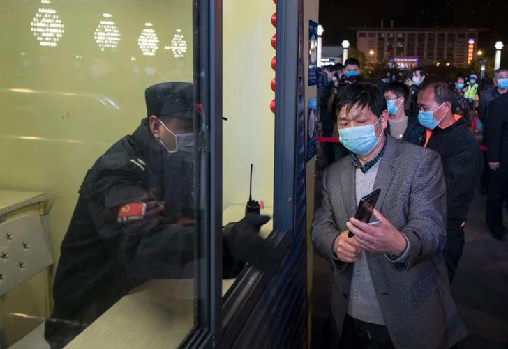 ▲ 4 月 7 日晚,旅客在武昌火车站向工作人员出示健康码。