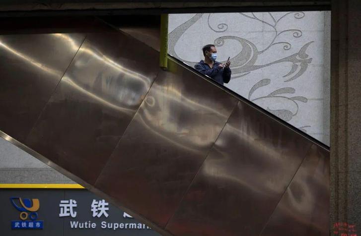 ▲ 4 月 7 日晚,一名旅客在武昌火车站拍摄站内情景。