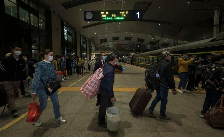 ▲ 4 月 8 日,武汉始发的首趟入粤旅客列车 G1005 次列车抵达广州南站后,旅客有序下车离站。