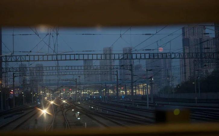 ▲ 4 月 8 日,D9301 次列车从机库驶向汉口站时,从驾驶室里可以看到当天的 " 超级月亮 "。