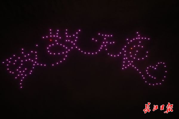 “今晚的无人机表演很暖心,这是我护士节收到的最好礼物。”5月11日晚,240架无人机在东湖绿道楚风园停车场平稳升起,引得游客阵阵欢呼。