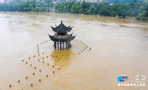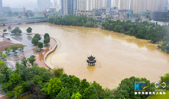 6月28日,重庆市南川区,被洪水淹没的凉亭。新华网发(甘昊旻 摄)