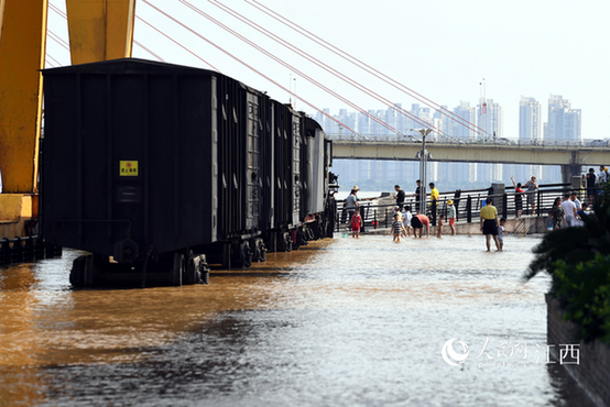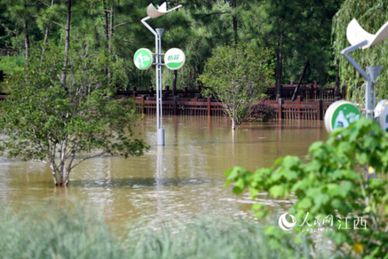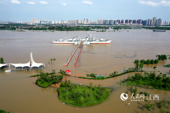 赣江南昌段水位超警 南昌舰主题公园被淹