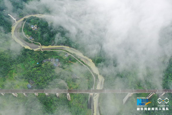 航拍宜万铁路横跨清江 新华网发