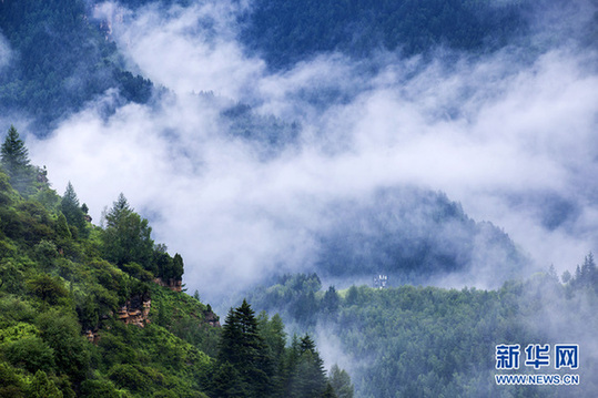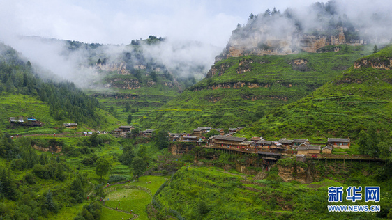 在山西省芦芽山深处,浓密葱茏的林海中,有三个古老而神奇的悬空村:王化沟村、五花山村、曹家梁村。这三个村子相距很近,分别建在悬崖绝壁间,远望好似空中楼阁、天上人家。