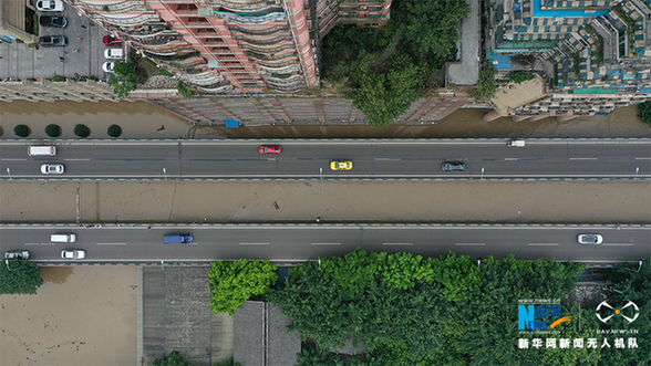 8月18日中午12点左右,重庆市沙坪坝区,洪水逼近道路。新华网发(王梓豪 摄)