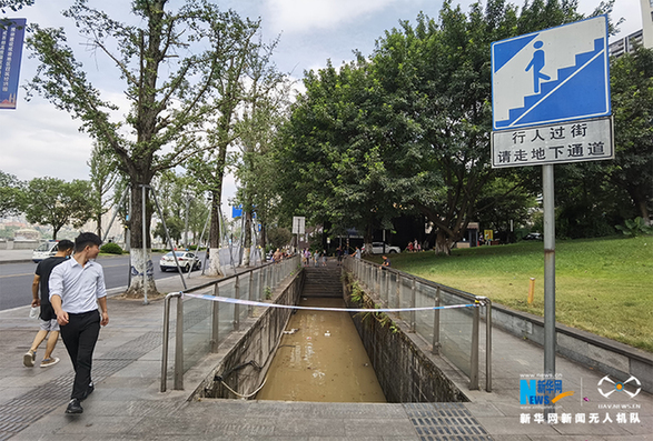 8月18日中午12点左右,重庆市南岸区,一地下通道内灌满洪水。新华网发(王正坤 摄)
