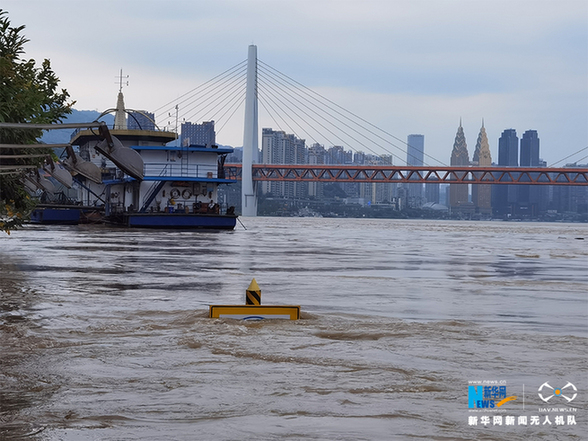 8月18日,“长江2020年第5号洪水”过境重庆主城。新华网发(王正坤 摄)