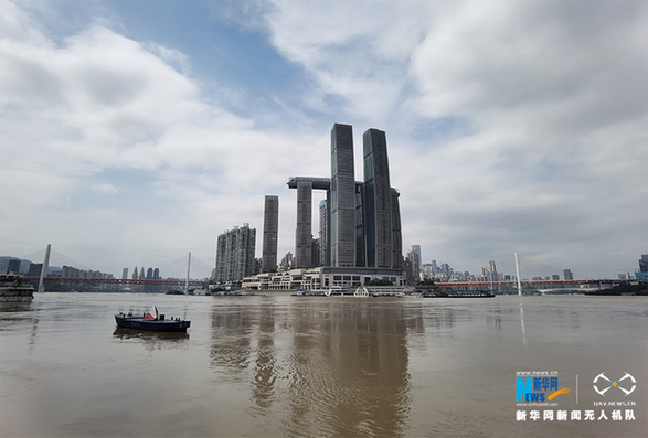 8月18日下午4点左右,重庆市渝中区,无人机视角下的储奇门物流市场。新华网发(何超 摄)