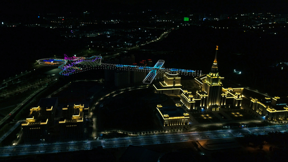 据介绍,本次表演的测试与飞行历时3天,有2020架无人机,100+工作人员与志愿者参与