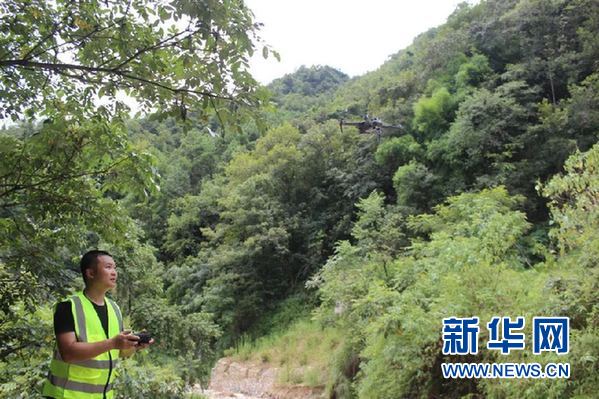 渝北区森林防护工作人员正使用无人机巡山。新华网发(张泽美摄)