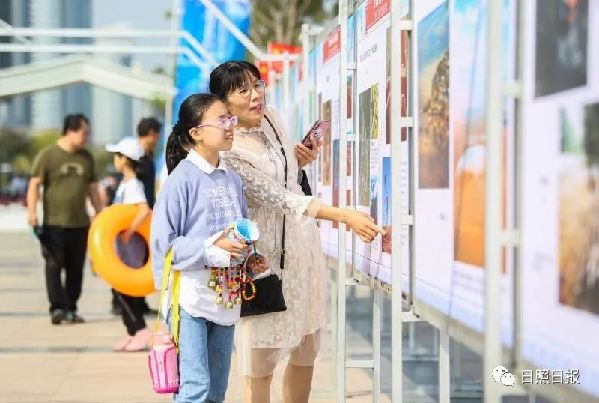 记者在现场看到,在“庄严的承诺”脱贫攻坚优秀摄影作品展前,一对父子正在仔细阅读?!罢馐且淮问芙逃墓蹋枚佣嘟哟ヒ恍┱芰?,培养一颗爱国的心。”游客郑成生告诉记者,趁着十一黄金周,他选择带着儿子出来走一走,看一看。“没想到在日照不光能欣赏美丽的风景,还能欣赏到这么高水平的摄影作品。读万卷书、行万里路,这次日照行,真是不虚此行。”