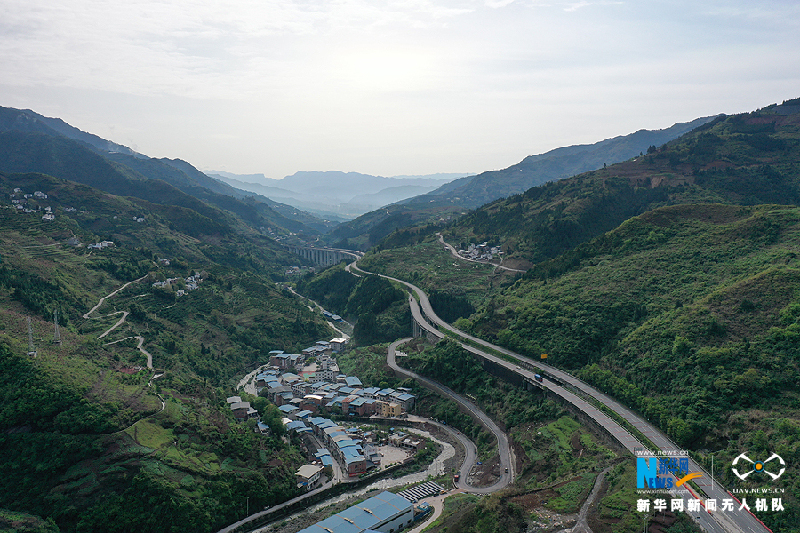4月8日,G42沪蓉高速三峡库区段,宽阔的高速公路与不远处的弯曲小路平行向前延伸。新华网 向进 摄