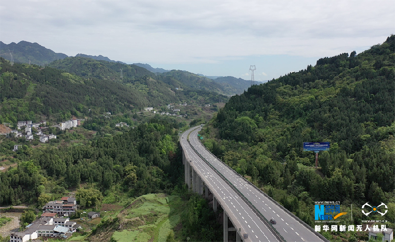 4月8日,G42沪蓉高速两侧绿树成荫,勾画出一幅山清水秀气象新的生态图景。新华网 向进 摄