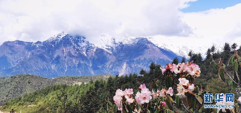 这是5月15日在吉隆沟拍摄的杜鹃花和雪山(手机照片)。