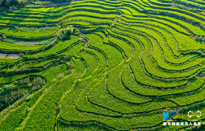 八月盛夏,重庆市南川区盐井梯田迎来绝佳景致。远远望去,上万丘梯田层层叠叠,青绿的田野秀丽大气、风光独特。新华网无人机“飞阅”盐井梯田,带你看夏日田园美景。新华网发(汪新摄)
