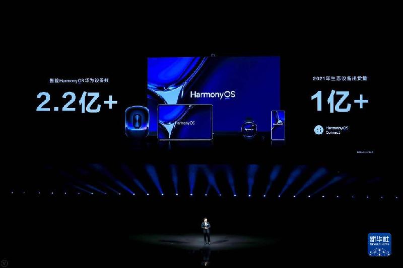 12月23日,华为常务董事、消费者业务CEO余承东在深圳举行的发布会上公布鸿蒙生态的最新进展。新华社发(华为供图)